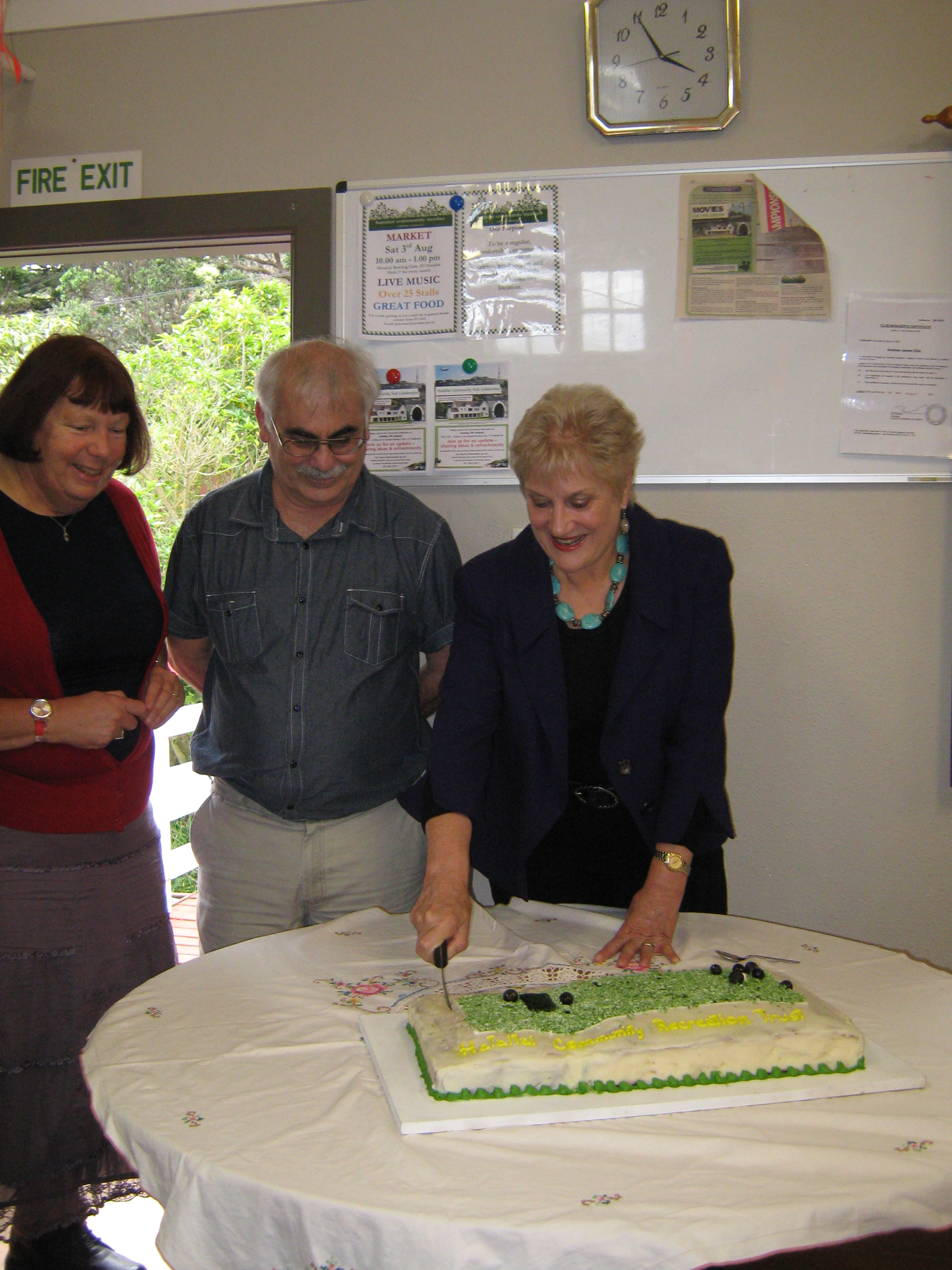 The occasion of the formal transfer was celebrated with an amazing afternoon tea. I have to say, there’s some great bakers in Hataitai!. Local MP, Annette King, cut the cake as shown in the photo below, with the assistance of Jenny Ellis (Community House) and Roy Glass (Bowling Club).
