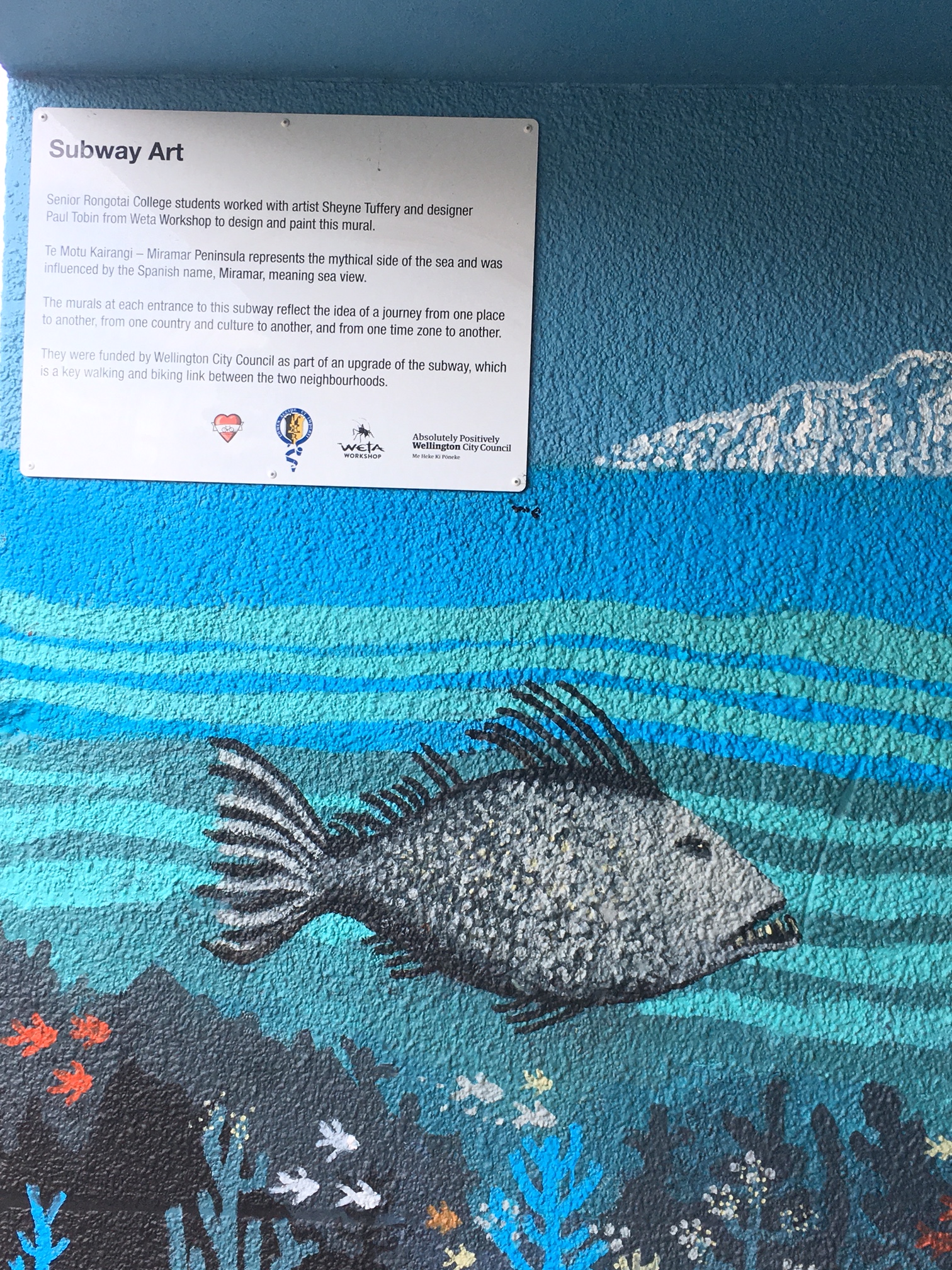 This was followed by improving the approaches, lighting and security for the airport runway subway in 2018, an issue highlighted by residents and local business network Enterprise Miramar. The colourful murals on each side reflecting the character and Maori mythology of the area were designed by artist Shayne Tuffery and painted with the help of students from Rongotai College. Surprisingly there are still locals who are not aware of this amazing connection (off Miro Street on the Miramar side, and off the far end of Coutts Street at the Rongotai side), but perhaps these photos will make the location of the approaches from both sides clearer.